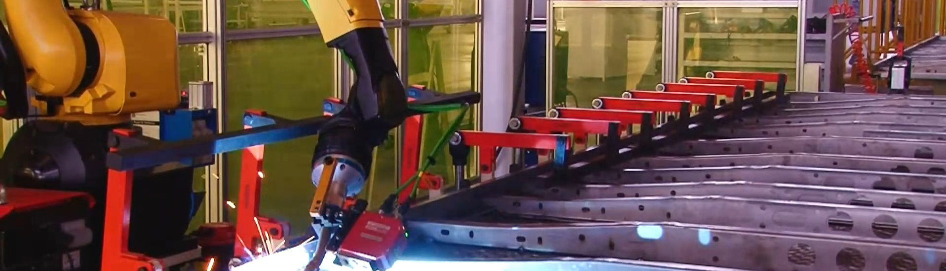 自动开卷落料、自动冲压生产、机器人焊接